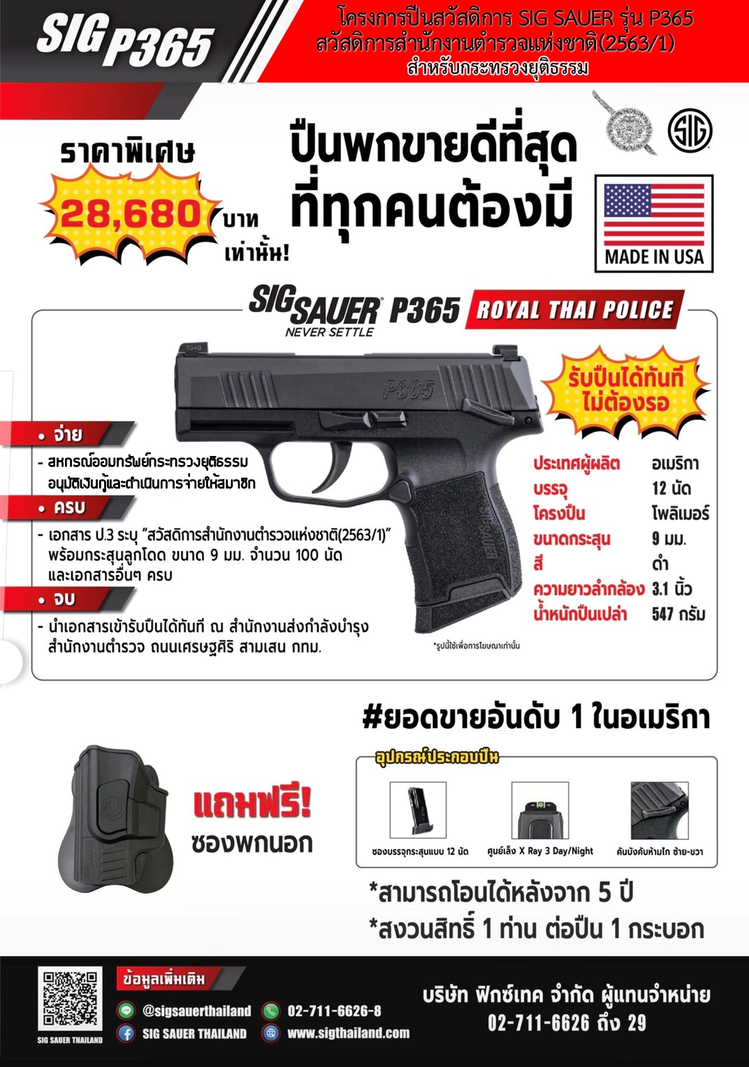1. จองอาวุธปืนโดยการชำระค่าอาวุธปืน จำนวน 28,680 บาท ผ่านเคาน์เตอร์ธนาคารกรุงไทย ปริ้นใบสั่งจองอาวุธปืนและเอกสารชำระเงินที่ https://www.sigthailand.com/p365/assets/doc/all_documents.pdf